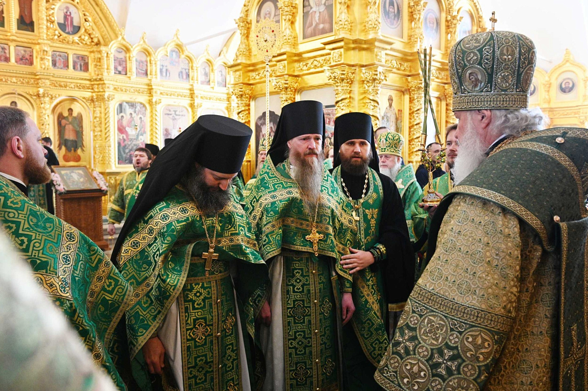 Его Святейшеству сослужили: митрополит Тверской и Кашинский Савва, управляющий делами Московской Патриархии; митрополит Архангельский и Холмогорский Даниил; архиепископ Каширский Феогност, председатель Синодального отдела по монастырям и монашеству; епископ Нарьян-Марский и Мезенский Иаков; епископ Котласский и Вельский Василий; епископ Павлово-Посадский Фома, руководитель Административного секретариата Московской Патриархии; епископ Плесецкий и Каргопольский Александр; архимандрит Порфирий (Шутов), наместник Соловецкого монастыря; архимандрит Герман (Чеботарь), духовник Соловецкого монастыря; священник Александр Волков, руководитель Пресс-службы Патриарха Московского и всея Руси; иеромонах Капитон (Засыпкин), клирик Илиинского кафедрального собора г. Архангельска; насельники Соловецкой обители в священном сане.