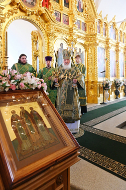 Затем Святейший Владыка совершил славление у раки с мощами преподобных Зосимы, Савватия и Германа Соловецких.
