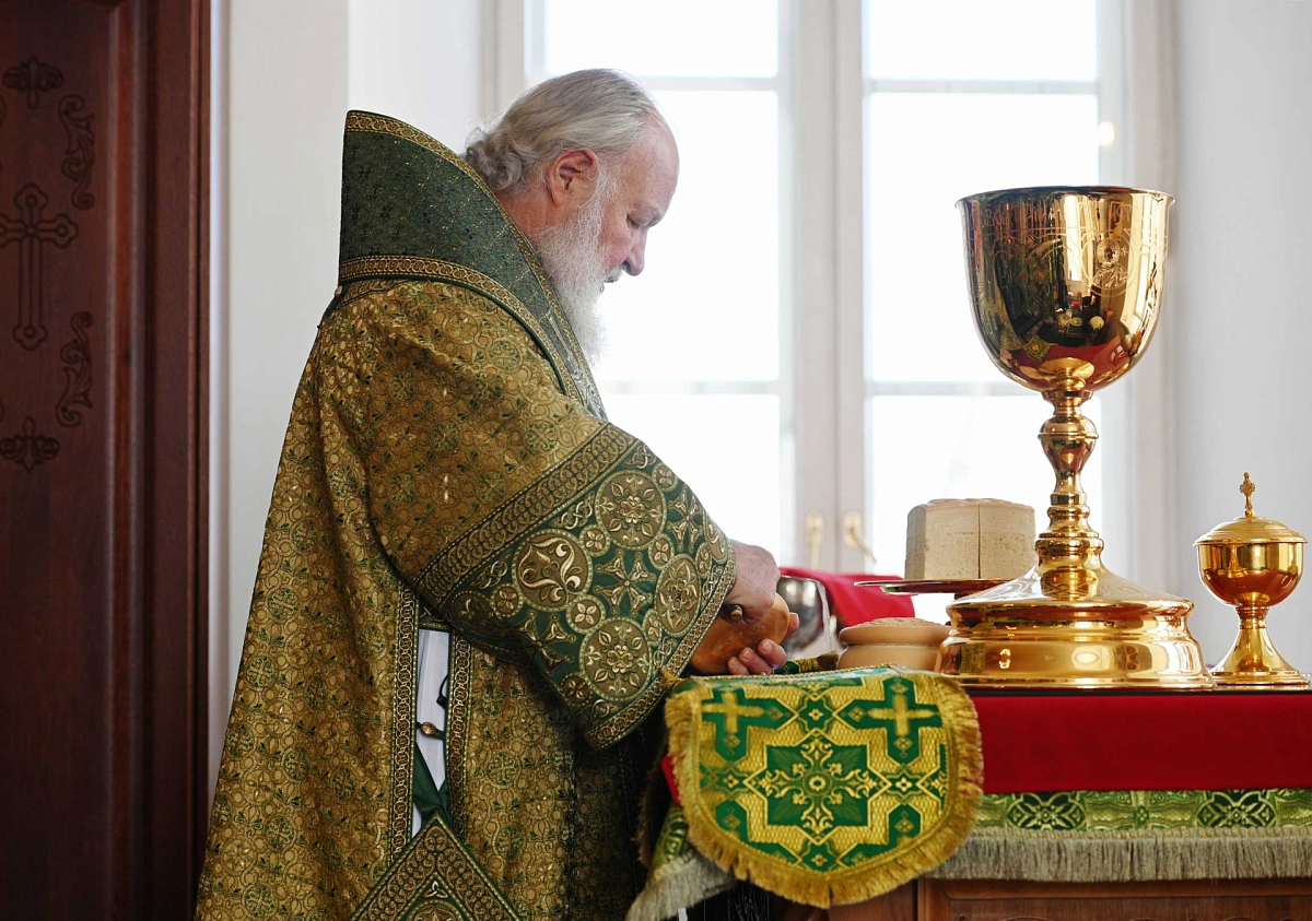 После сугубой ектении Святейший Патриарх Кирилл вознес молитву о мире на Украине.