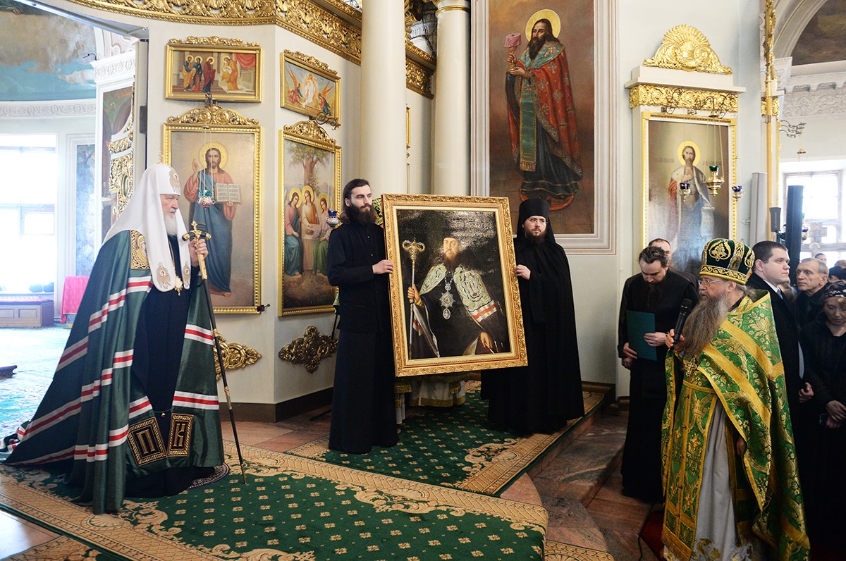 От лица насельников Данилова монастыря наместник обители архимандрит Алексий (Поликарпов) приветствовал Святейшего Владыку и преподнес Его Святейшеству портрет митрополита Платона (Левшина), который составил и опубликовал в 1791 году житие святого благоверного князя Даниила и службу ему.