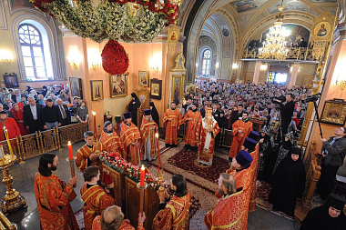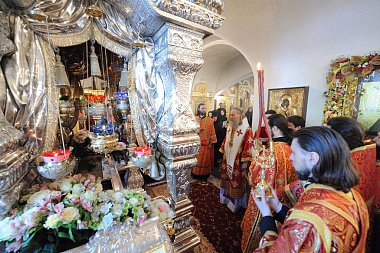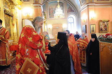 Его Высокопреосвященству сослужили заместитель Председателя Синодального отдела по монастырям и монашеству архимандрит Стефан (Тараканов) и клирики обители.