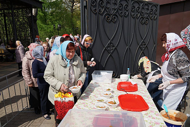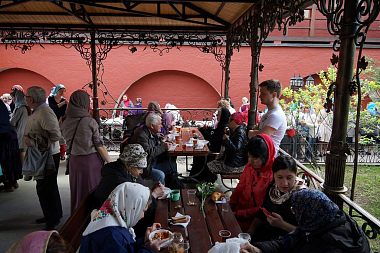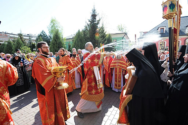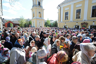 Здесь, у святой блаженной Матроны, всегда удивительная радость, и радость эта тихая, радость с воздержанием. Народ, который переступает порог обители Покровской, народ, который идет к блаженной Матроне, уже приобщается к этой радости, и здесь эта радость всегда на всякое время года, но сегодня эта радость – особенная, ибо второй день Пасхи и память святой праведной Матроны Московской.