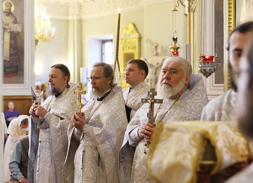 За праздничной трапезой епископа Алексия с тезоименитством поздравили братия обители. Затем в Троицком соборе Его Преосвященство принял поздравления от сотрудников монастыря и многочисленных духовных чад.