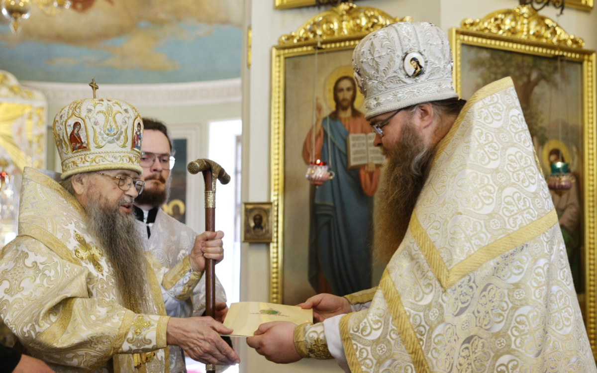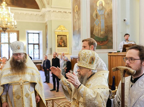 По окончании Литургии архимандрит Стефан (Тараканов) передал епископу Алексию поздравление Святейшего Патриарха Московского и всея Руси Кирилла по случаю дня тезоименитства: