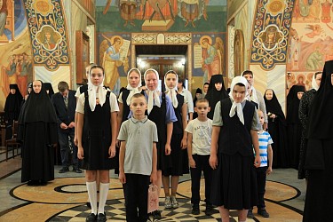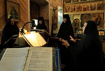 Богослужебные песнопения исполнил сестринский хор монастыря и мужской хор храма Живоначальной Троицы в Останкине города Москвы.