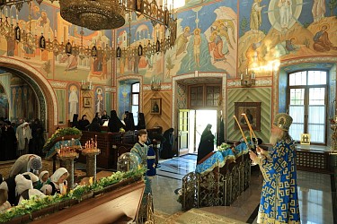 Его Высокопреосвященству сослужили заместитель председателя Синодального отдела по монастырям и монашеству, наместник Саввино-Сторожевского ставропигиального мужского монастыря архимандрит Стефан (Тараканов), клирики Стефано-Махрищского монастыря и его подворья, гости обители в священном сане.