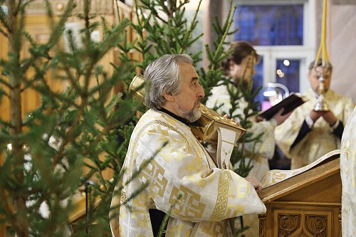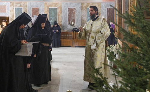 Его Высокопреосвященству сослужило монастырское духовенство.
