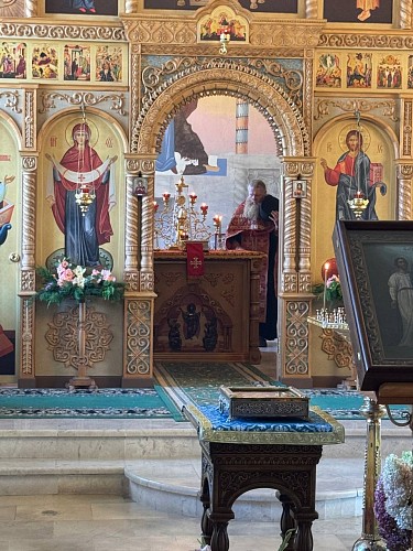 За Литургией молились настоятельница обители игумения Неонилла (Фролова) с сестрами и воспитанницами «Службы помощи семье и детям», настоятельница Свято-Троицкого Александро-Невского ставропигиального женского монастыря в селе Акатово Московской области игумения Антония (Минина), прихожане и гости обители.