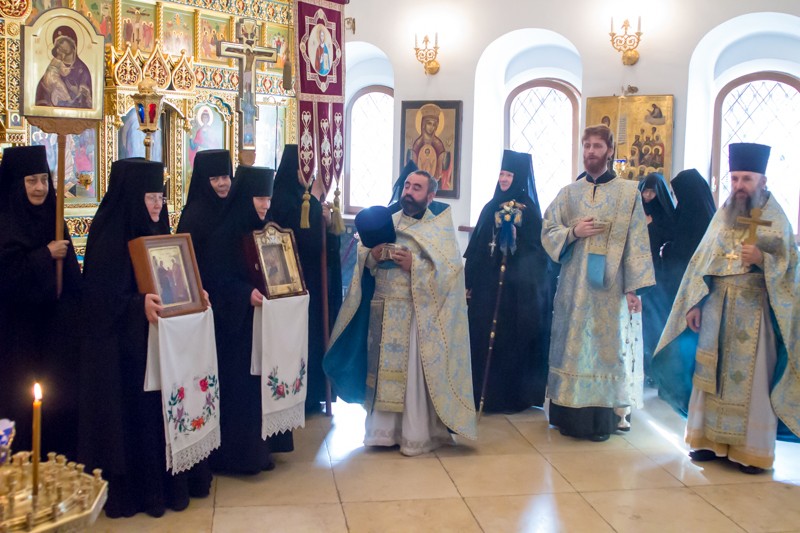За богослужением молились: Заместитель Председателя Синодального отдела по монастырям и монашеству, настоятельница Зачатьевского ставропигиального женского монастыря игумения Иулиания (Каледа) с сестрами; настоятельница Полоцкого Спасо-Евфросиниевского женского монастыря игумения Евдокия (Левшук); настоятельница монастыря Святой Параскевы на о. Корфу (Греция) игумения Фотиния (Маршал); настоятельница Свято-Вознесенского женского монастыря Проти Серрон (Греция) игумения Анисия; настоятельница женского монастыря Преподобной Софии Слуцкой (Беларусь) игумения Анастасия.