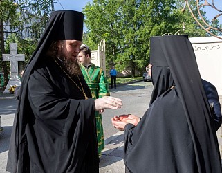 Литургия завершилась крестным ходом вокруг обители, по окончании которого владыка Силуан произнес проповедь.