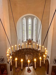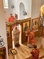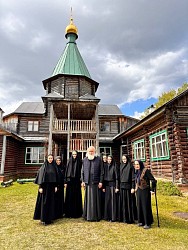 Богослужебные песнопения исполнил совместный хор сестер и прихожан скита.