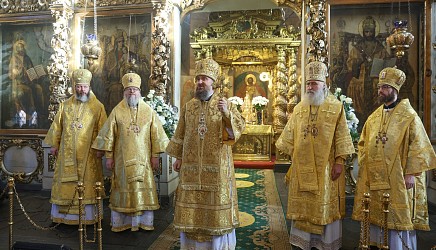 Его Высокопреосвященству сослужили: председатель Синодального отдела по монастырям и монашеству, наместник Донского ставропигиального мужского монастыря митрополит Каширский Феогност; архиепископ Владикавказский и Аланский Герасим; наместник Введенского ставропигиального мужского монастыря Оптина пустынь епископ Можайский Иосиф; епископ Таганрогский Артемий, викарий Ростовской епархии; епископ Джакартский Питирим, викарий Сингапурской епархии; наместник Высоко-Петровского ставропигиального мужского монастыря г. Москвы епископ Луховицкий Евфимий; епископ Николаевский и Богородский Иннокентий; епископ Балаковский и Николаевский Варфоломей; епископ Актюбинский и Кызылординский Игнатий; епископ Талдыкорганский Клавдиан, викарий Астанайской епархии; епископ Пинский и Лунинецкий Георгий; епископ Друцкий Евсевий, викарий Витебской епархии; наместник Свято-Троицкой Сергиевой лавры епископ Сергиево-Посадский и Дмитровский Кирилл; епископ Сарапульский и Можгинский Павел; епископ Братский и Усть-Илимский Константин; епископ Россошанский и Острогожский Дионисий; епископ Талгарский Вениамин; епископ Ноябрьский Феодосий, викарий Салехардской епархии; епископ Бикинский Пантелеимон, викарий Хабаровской епархии.