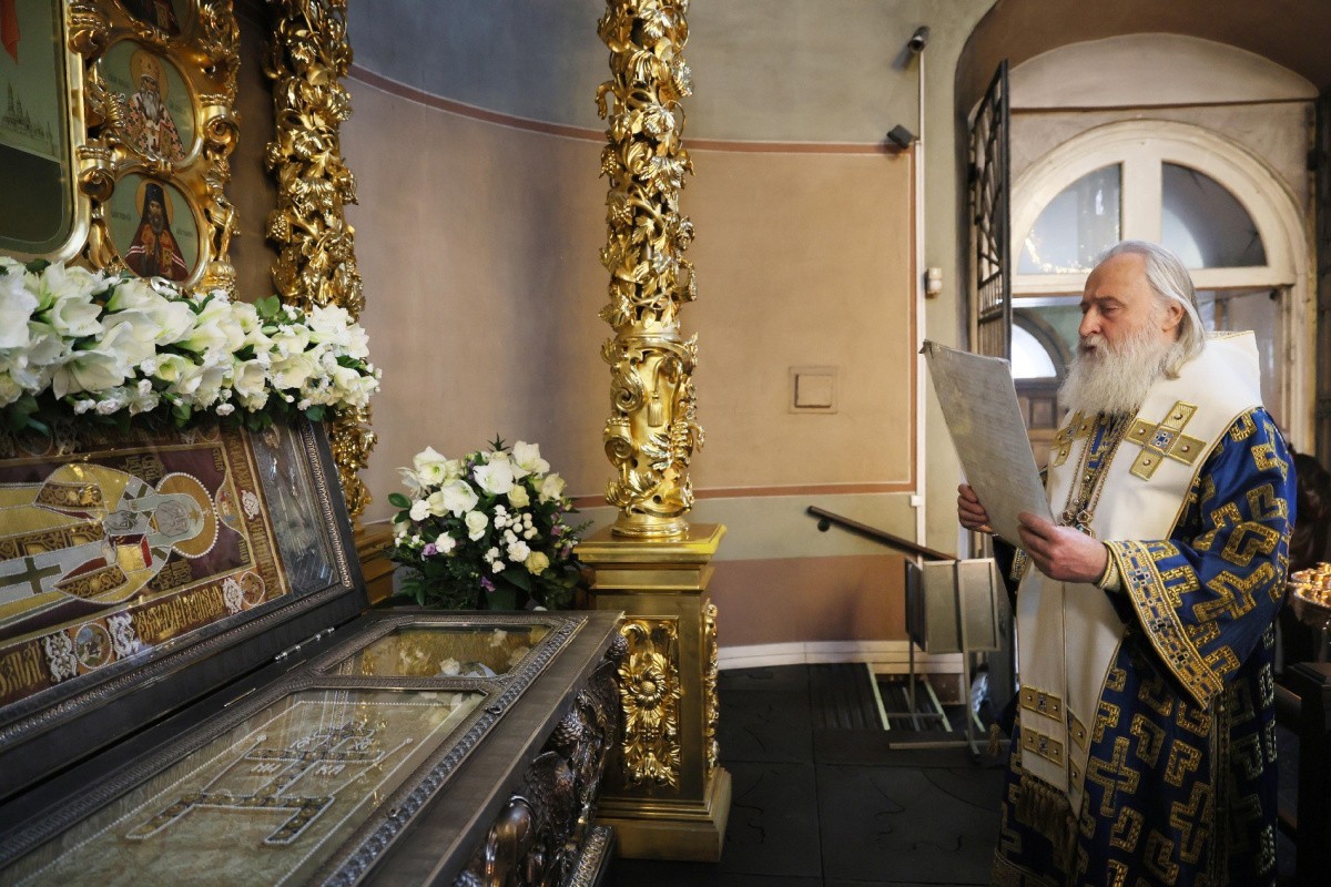 По окончании Литургии перед мощами святителя Тихона было совершено славление и прочитана молитва святому.