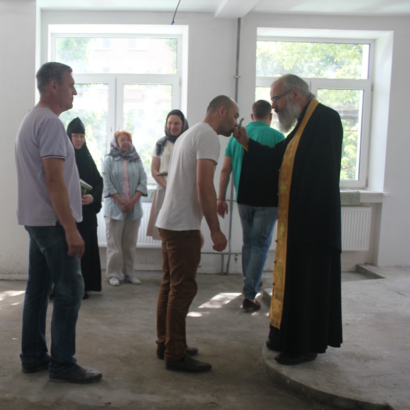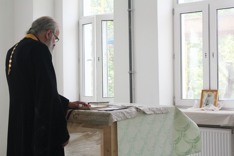 Богослужение совершил клирик Марфо-Мариинской обители милосердия протоиерей Александр Дубинин. На молебне присутствовали сотрудники Развивающего центра и специалисты, осуществляющие ремонтные работы здания.
