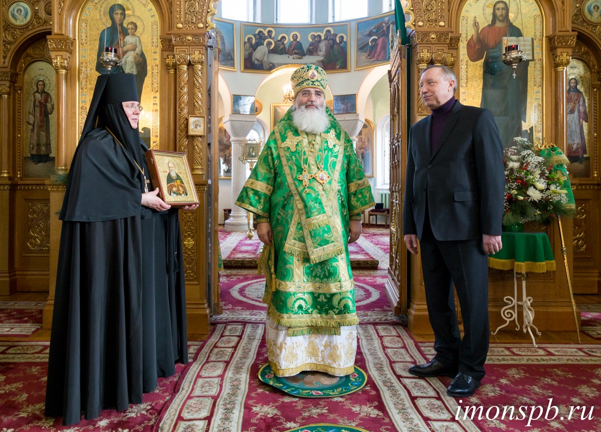 Затем глава Тихвинской епархии обратился с приветственным словом к губернатору Санкт-Петербурга А.Д. Беглову:
