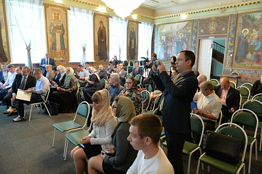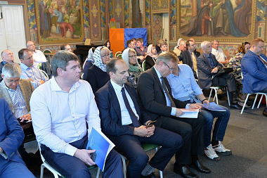 Перед началом заседания с приветственным словом к собравшимся обратились президент Торгово-промышленной палаты И.Е. Куимов, глава Волоколамского района Е.В. Гаврилов и наместник монастыря архимандрит Сергий (Воронков).