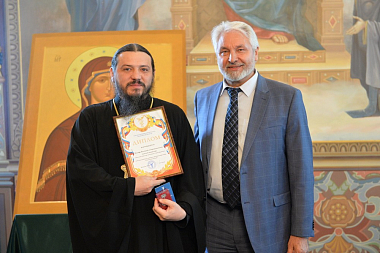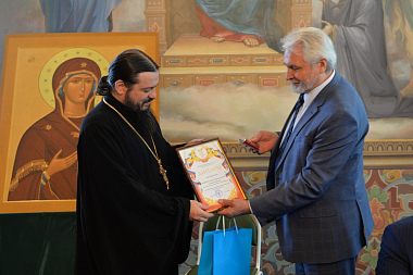 В Успенском соборе обители гости поклонились мощам преподобного Иосифа Волоцкого, который по благословению Святейшего Патриарха Московского и всея Руси Кирилла почитается как покровитель православного предпринимательства и хозяйствования.