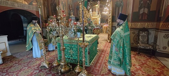 Утром 14 июня в Успенском соборе наместник монастыря архимандрит Сергий в сослужении братии совершил праздничную Литургию, после которой состоялся крестный ход вокруг собора.