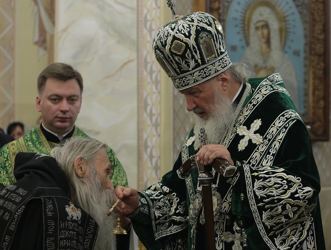 Предстоятель поблагодарил архимандрита Венедикта за большой вклад в духовное воспитание монашествующих и заботу не только о внешнем, но и внутреннем благополучии обители. Святейший Патриарх вручил наместнику обители юбилейный крест, изготовленный к 1000-летию преставления святого равноапостольного великого князя Владимира.