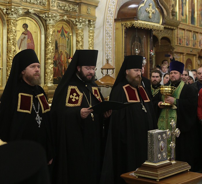 По окончании Всенощного бдения Святейший Патриарх Кирилл возглавил чин наречения архимандрита Тихона (Шевкунова) во епископа Егорьевского и архимандрита Антония (Севрюка) во епископа Богородского.