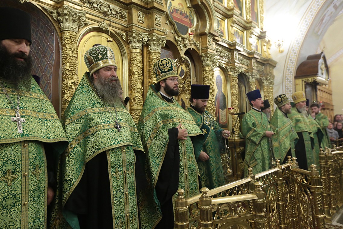 Богослужебные песнопения исполнили правый и левый братские хоры Оптиной пустыни под управлением иеромонахов Виталия (Белова) и Константина (Никитенко).