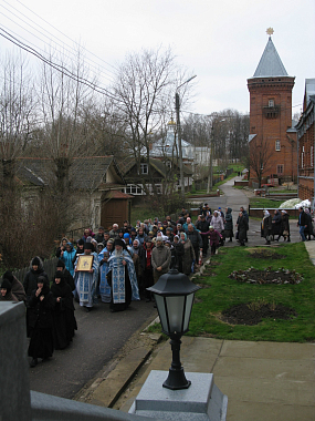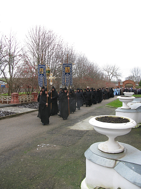 По окончании Литургии был совершен крестный ход вокруг Казанского собора обители.
