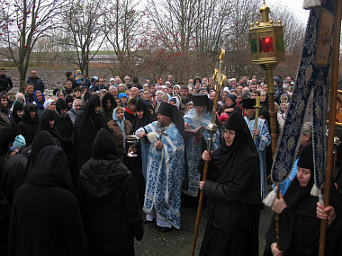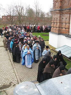 За богослужением молились настоятельница монастыря игумения Сергия (Щербакова) с сестрами, гости и многочисленные паломники.