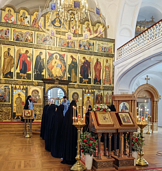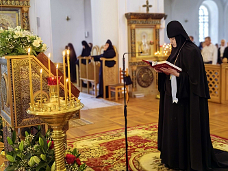 Праздничные богослужения прошли в Казанском соборе. По традиции на поклонение в центр храма была вынесена Казанская икона Божией Матери, написанная до революции, – список с утраченной чудотворной иконы. Перед образом на малой вечерне сестрами был пропет акафист Казанской иконе Богородицы.