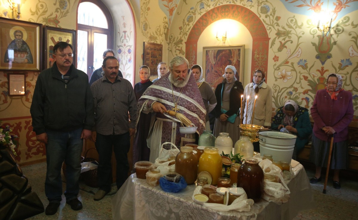 Затем был отслужен молебен с водосвятием и освящен мед нового урожая.