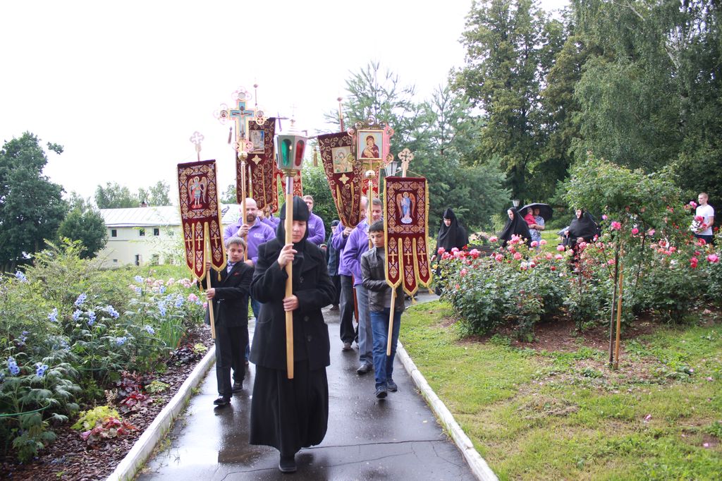 По окончании Божественной литургии был совершен праздничный крестный ход вокруг монастыря, во время которого хоругви несли волонтеры монастыря, а также маленькие прихожане.