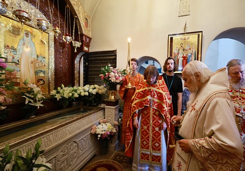 По окончании Божественной литургии владыка прочитал молитву и совершил славление перед ракой с мощами преподобномученицы Елисаветы.
