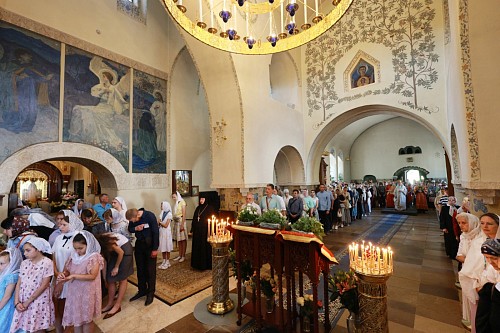 Позднюю Божественную литургию в Покровском соборе обители возглавил епископ Верейский Пантелеимон, викарий Святейшего Патриарха Московского и всея Руси.