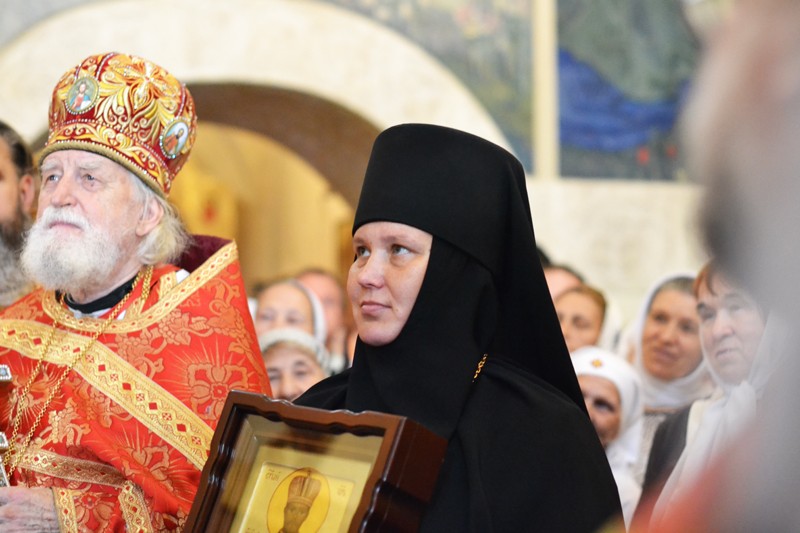 По окончании богослужения владыка Пантелеимон обратился к присутствующим с архипастерским словом и поздравил с днем тезоименитства игумению Елисавету, подарив ей от имени насельниц обители памятную икону императора-страстотерпца Николая II: