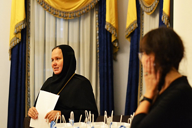 28 сентября 2018 года в Голубой гостиной Марфо-Мариинской обители милосердия состоялась встреча добровольцев с настоятельницей ставропигиального монастыря игуменией Елисаветой (Поздняковой).