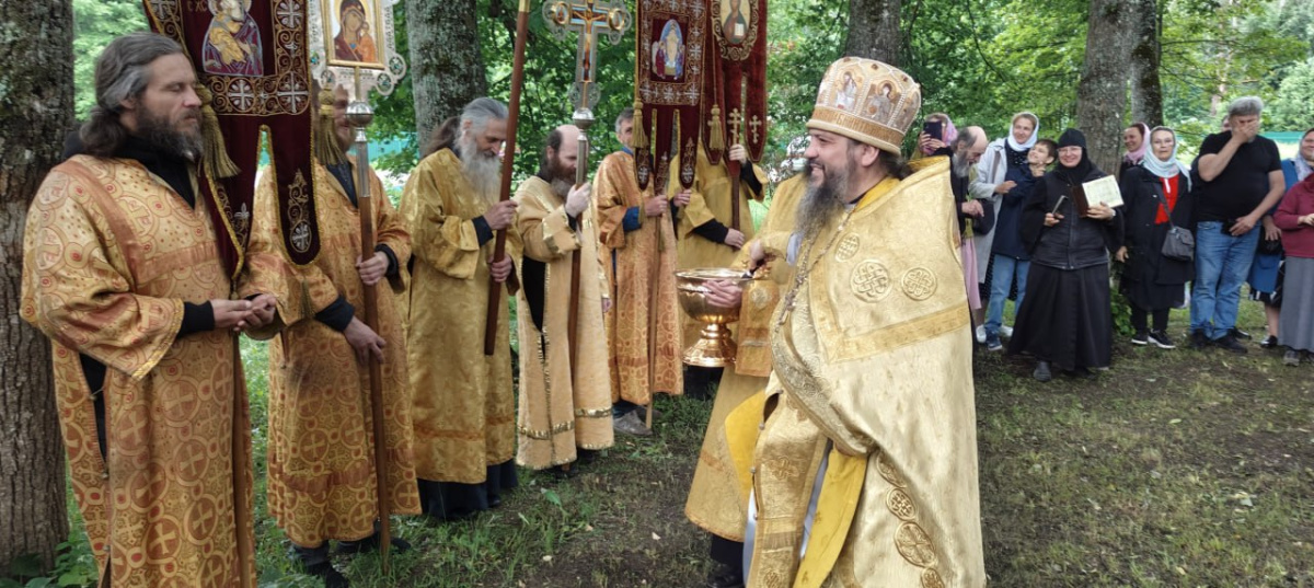 Затем в Успенском соборе монастыря была совершена поздняя Литургия, которую возглавил наместник обители архимандрит Сергий (Воронков). По окончании Литургии братия и многочисленные паломники направились в скит, где был отслужен водосвятный молебен. Все помещения скита, где идут восстановительные работы, окропили освященной водой.