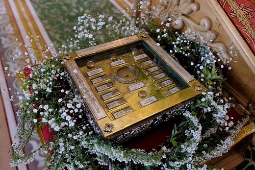 Ковчег с частицей святых мощей был привезен из Свято-Успенского Вышенского женского монастыря игуменией Димитрией (Лукьяновой) в сопровождении сестер обители. На Шостьенской земле святыню встречали настоятельница Никольского Шостьенского ставропигиального женского монастыря игумения Неонилла (Фролова) с сестрами и воспитанницами, клирик монастыря протоиерей Владимир Постников, глава Шостьенского сельского поселения Наталья Владимировна Блинова. Духовную радость обретения святыни разделили многочисленные прихожане и гости монастыря.
