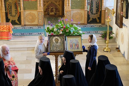 За богослужением молились настоятельница обители игумения Неонилла (Фролова) с сестрами и воспитанницами структурного подразделения «Служба помощи семье и детям», прихожане и паломники обители.