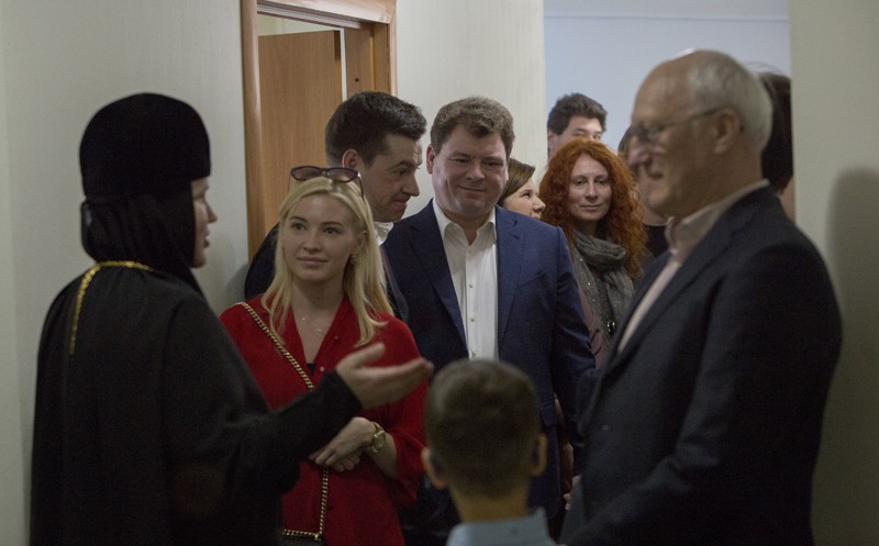 Для гостей настоятельница обители игумения Елисавета (Позднякова) провела экскурсию по отремонтированному зданию. На небольшой фотовыставке для сравнения были представлены снимки помещений до ремонта.
