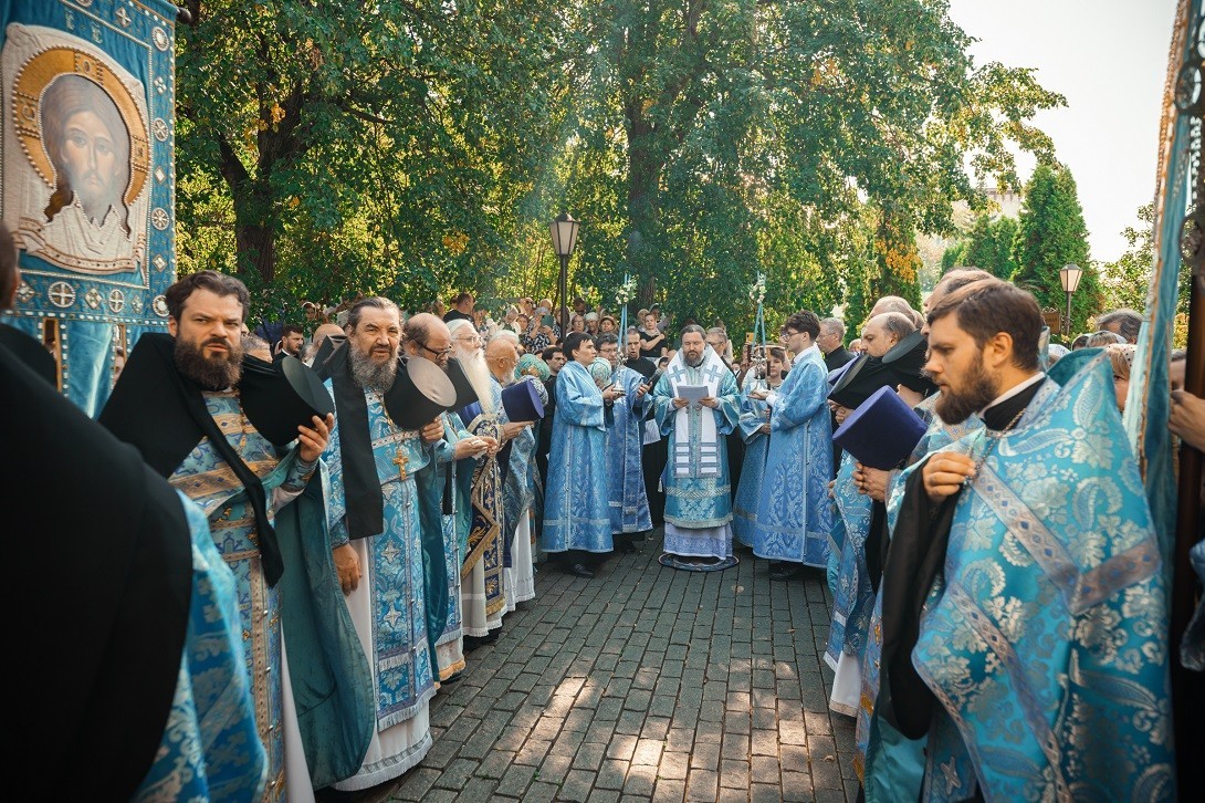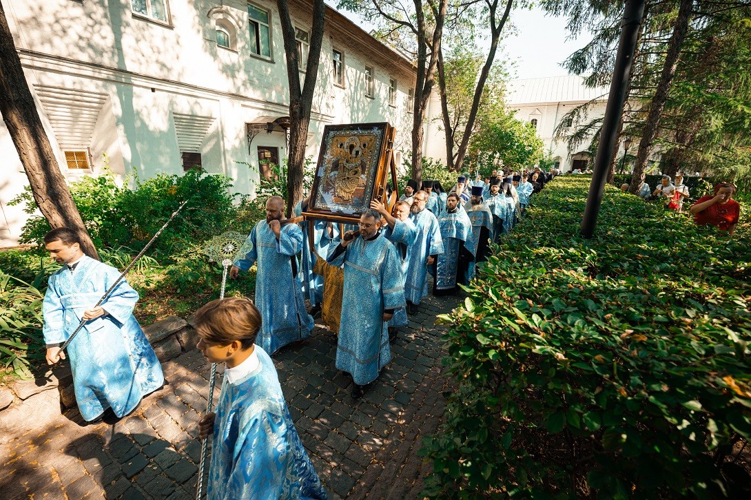 По окончании Литургии состоялся крестный ход по обители с иконой Божией Матери «Всецарица». Затем образ был поставлен в специальном украшенном шатре у собора для поклонения верующих.