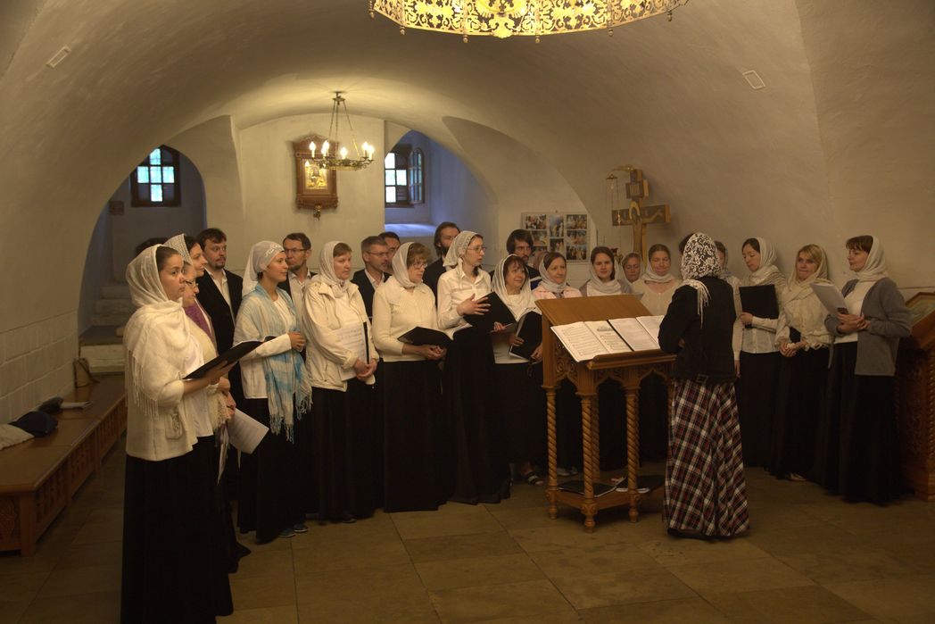 По завершении выступлений для участников круглого стола был устроен небольшой концерт: миссионерский хор Новоспасского монастыря «Правило веры» под руководством регента М.Ю. Рогозинской исполнил древние монастырские распевы в гармонизации митрополита Ионафана (Елецких) и монахини Иулиании (Денисовой).