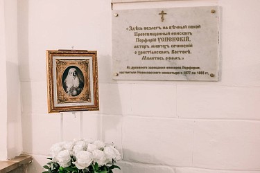 Перед началом заседания в монастырском храме преподобного Романа Сладкопевца (усыпальница бояр Романовых) была совершена лития у места захоронения епископа Порфирия (Успенского). Владыка отошел ко Господу 19 апреля 1885 года, в возрасте 81 года. Согласно его желанию на мраморной плите выбита надпись: «Здесь возлег на вечный покой преосвященный Порфирий Успенский, автор многих сочинений о христианском Востоке. Молитесь о нем».