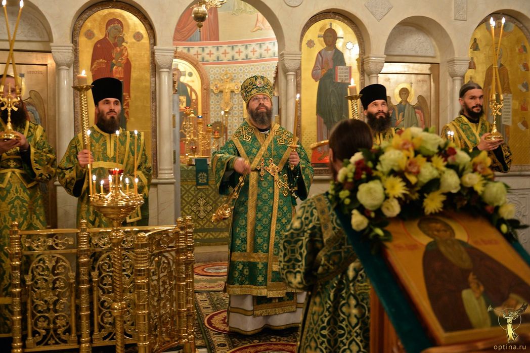 Накануне праздника в храме прп. Илариона Великого наместник Введенского ставропигиального мужского монастыря Оптина пустынь епископ Можайский Леонид в сослужении братии в священном сане совершил всенощное бдение.