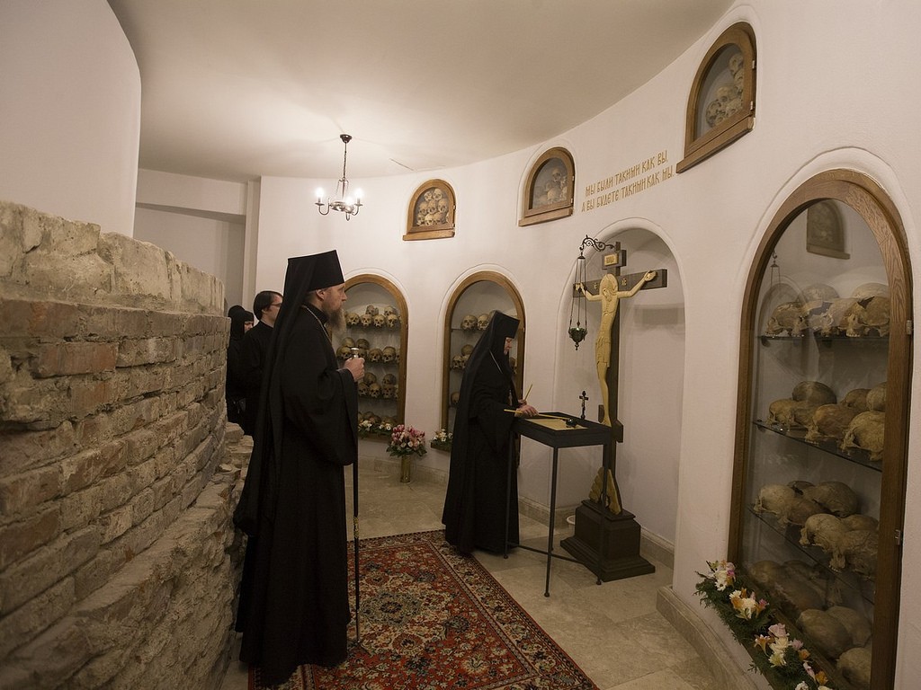 Его Преосвященство поклонился главным монастырским святыням: гробнице на месте почитания преподобных основательниц обители Иулиании и Евпраксии Московских, чтимой иконе Божией Матери «Милостивая», а также приложился к частице мощей прп. Андрея Критского, ковчег с которой в первые четыре дня выносится в центр храма для поклонения верующих.