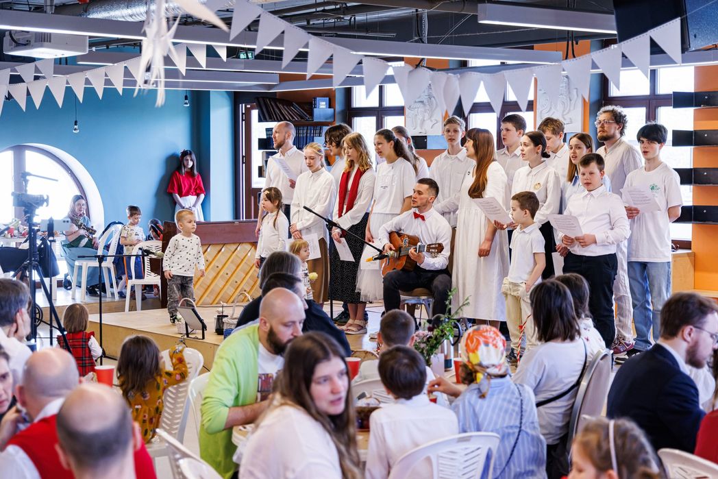 Вечером в день Пасхи участники пасхального лагеря посетили с музыкальной программой благотворительный ужин для бедных людей, одиноких дедушек и бабушек, где пели песни и славили Воскресшего Христа».