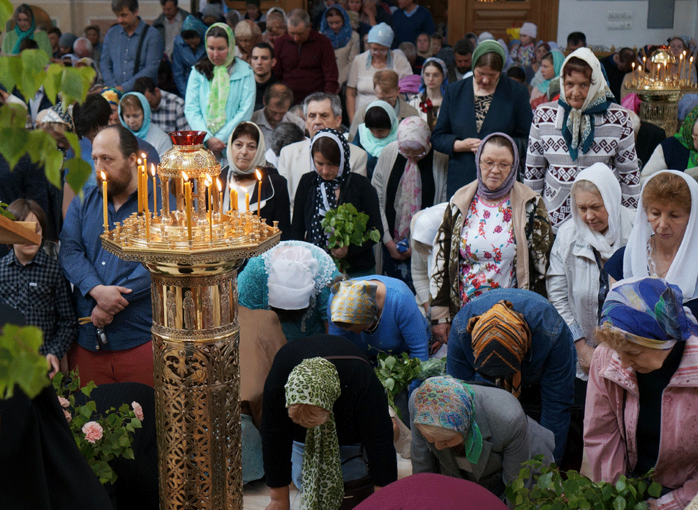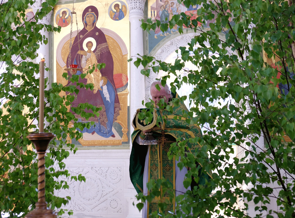 По окончании Литургии на Великой вечерне читались особые коленопреклонные молитвы ко Святой Троице о ниспослании благодати Святого Духа, об очищении грехов и спасении всех. Радостное, благоговейное настроение присутствовало в храме, и солнечный теплый день стал Божиим подарком к Святому празднику.