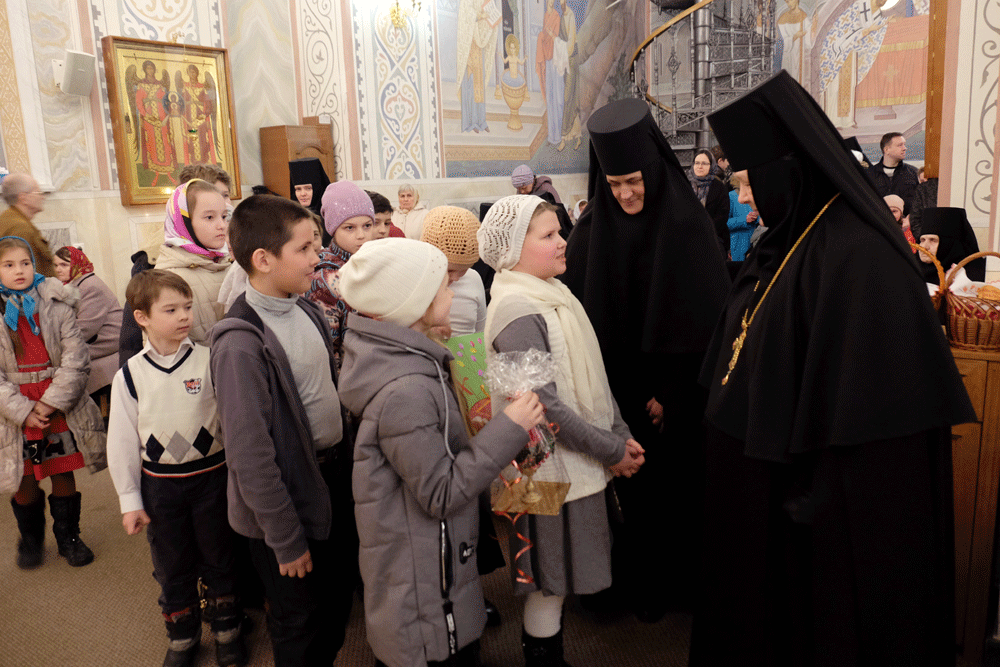За богослужением молились настоятельница монастыря игумения Олимпиада (Баранова) с сестрами, воспитанницы детского пансиона и ученики Воскресной школы, а также прихожане и гости обители.