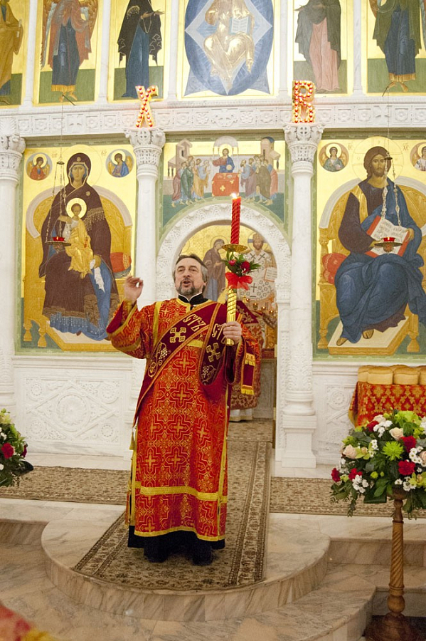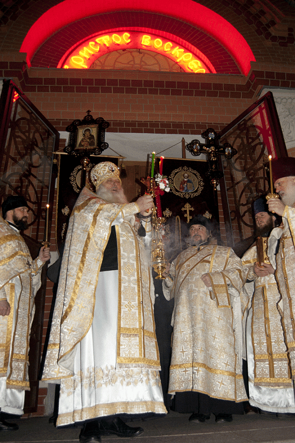 Перед Причастием было зачитано Пасхальное послание Святейшего Патриарха Московского и всея Руси Кирилла архипастырям, пастырям, диаконам, монашествующим и всем верным чадам Русской Православной Церкви.