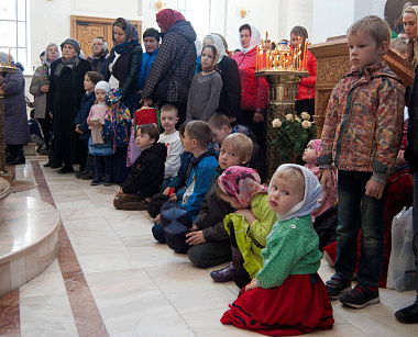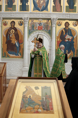 За поздней Литургией молились настоятельница монастыря игумения Олимпиада (Баранова) с сестрами.