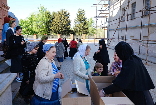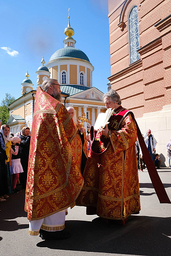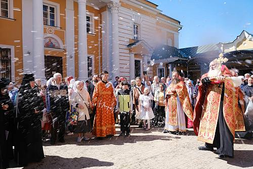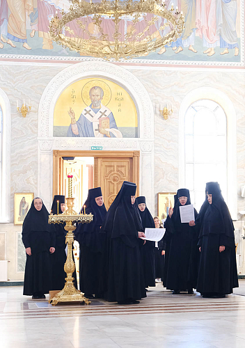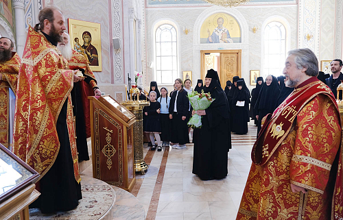 В день праздника в обители были совершены две Божественные Литургии: ранняя – в Покровском соборе и поздняя – в Никольском соборе монастыря.
