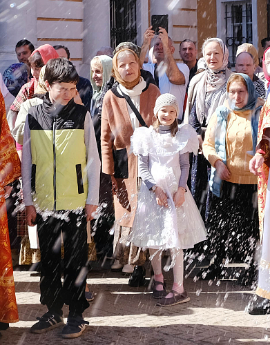 По окончании богослужения был отслужен праздничный молебен. Затем состоялся Крестный ход вокруг Никольского собора.